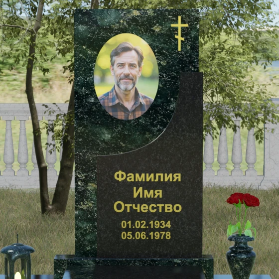 Модель Артикул 024 представляет собой законченное архитектурное решение. Стела установлена на массивный гранитный цоколь, который служит надежным фундаментом и придает всей конструкции необходимую устойчивость. Важной особенностью данного проекта является полное мощение участка: вместо открытого грунта используется сплошная надгробная плита. Это не только создает эстетически безупречный, аккуратный вид, но и значительно упрощает уход за местом захоронения, избавляя от необходимости борьбы с сорняками. В едином стиле с основным монументом выполнены дополнительные элементы декора: изящная каменная ваза, установленная на плите, позволяет приносить живые цветы, сохраняя гармонию композиции. Каменный бордюр по периметру участка четко очерчивает границы мемориала, превращая его в уединенное место для тихой молитвы и воспоминаний.