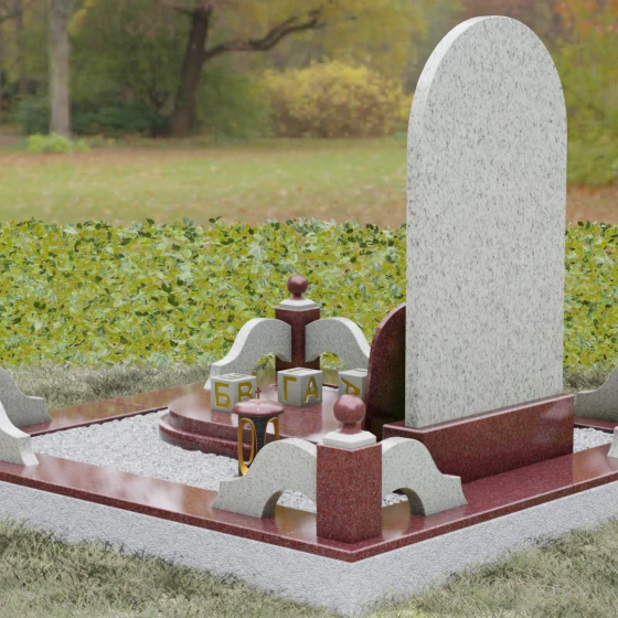 Геометрия памятника лишена острых углов, что наполняет пространство захоронения атмосферой покоя и умиротворения. Особое внимание уделено инкрустации в форме сердца, выполненной из насыщенного красного гранита. На его идеально гладкой поверхности гравировка дат и имени выглядит особенно выразительно, а сам алый цвет камня становится ярким акцентом, символизирующим живую память, которая не угасает с годами. Каждая грань стелы тщательно обработана, создавая эффект внутреннего свечения при попадании солнечных лучей, что превращает монумент в настоящее произведение мемориального искусства.