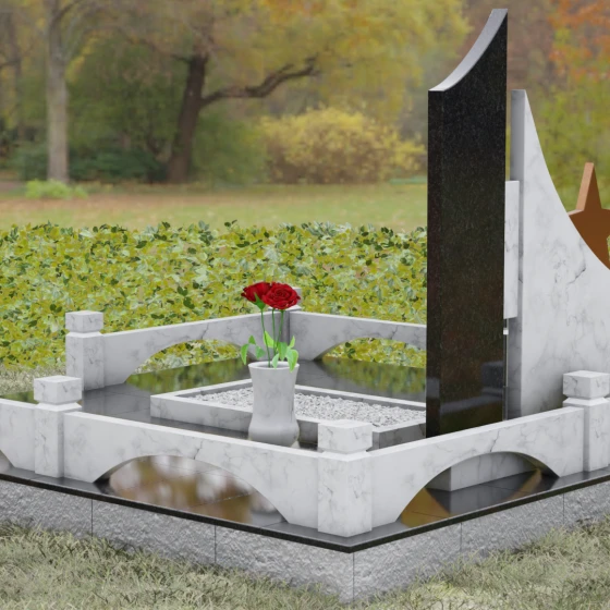 Форма данного ансамбля наполнена глубокими метафорами. Разновысотные элементы символизируют разные этапы жизненного пути, а восходящие линии стелы — стремление души к свету и вечному покою. Пятиконечная звезда и боевая награда являются не просто знаками отличия, а символами защиты, верности долгу и несгибаемой воли. Закрытая структура основания и наличие каменного ограждения (цоколя) создают ощущение приватности и защищенности, превращая место захоронения в священный островок тишины и памяти, где время словно замедляет свой бег.