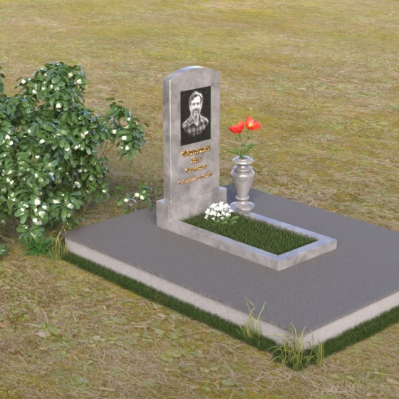 Благодаря своей лаконичной форме, эта стела предоставляет широкие возможности для оформления. Портрет усопшего будет гармонично смотреться как в верхней части стелы, так и чуть ниже центра. Золотое тиснение имени и дат жизни будет элегантно выделяться на фоне полированного камня, создавая четкий и легко читаемый образ. Небольшая тумба, расположенная перед стелой, может служить местом для возложения цветов и памятных вещей. Мы рекомендуем выбирать для этой модели сдержанные, лаконичные шрифты, которые подчеркнут общую элегантность композиции. Подумайте о возможности добавления небольшого бронзового барельефа или скульптуры, отражающей профессию или увлечения ушедшего человека. Это добавит индивидуальности и сделает место памяти еще более личным и значимым. Ваза, выполненная в едином стиле с монументом, завершит композицию и придаст ей законченный вид.