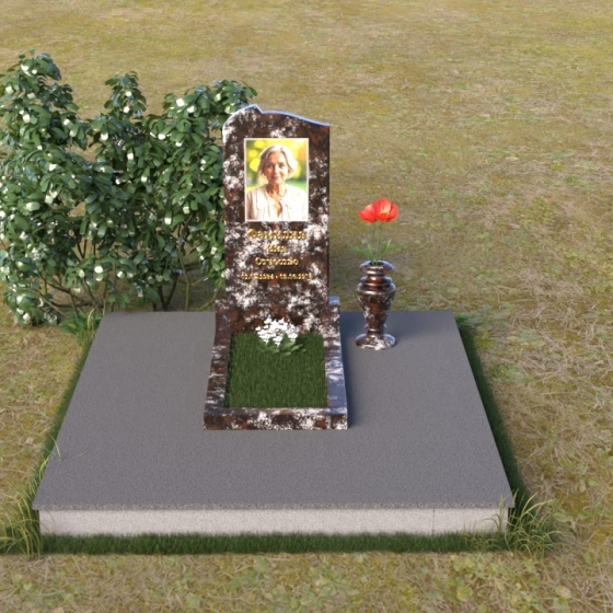 Форма арки, использованная в верхней части стелы, символизирует небесный свод, защиту и покровительство высших сил. Она создает ощущение покоя и умиротворения, напоминая о вечном пристанище души. Прямоугольное основание, напротив, олицетворяет земную твердь, незыблемость памяти и преемственность поколений. Сочетание этих двух форм создает гармоничный образ, объединяющий земное и небесное, временное и вечное. Зеркальная полировка камня символизирует чистоту помыслов и искренность чувств, которые испытывают близкие к ушедшему. Этот памятник – не просто знак скорби, а символ надежды и веры в бессмертие души.