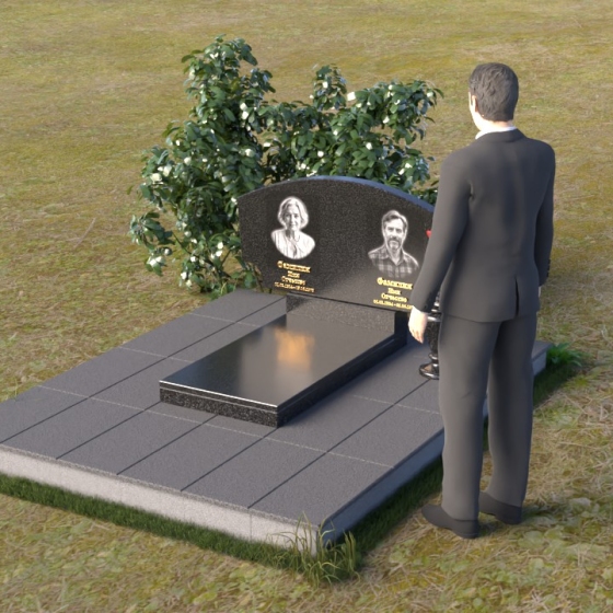 Эта мемориальная композиция, артикул ПГ023, воплощает собой сдержанную элегантность и глубокое уважение к ушедшим. Ее плавные, скруглённые линии словно рассказывают историю жизни, полной взлетов и падений, радостей и печалей, и теперь нашедшей свой покой. Верхняя часть стелы имеет мягкий, дугообразный изгиб, напоминающий о небесном своде, под которым души обретают вечный приют. Зеркальная полировка камня отражает свет, создавая ощущение легкости и воздушности, а контраст с матовой поверхностью гравировки портретов придает изображению глубину и выразительность. Простота формы не отвлекает от главного – светлых образов тех, кто дорог нашему сердцу.